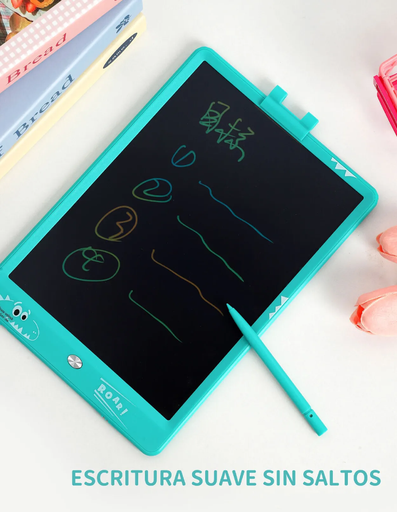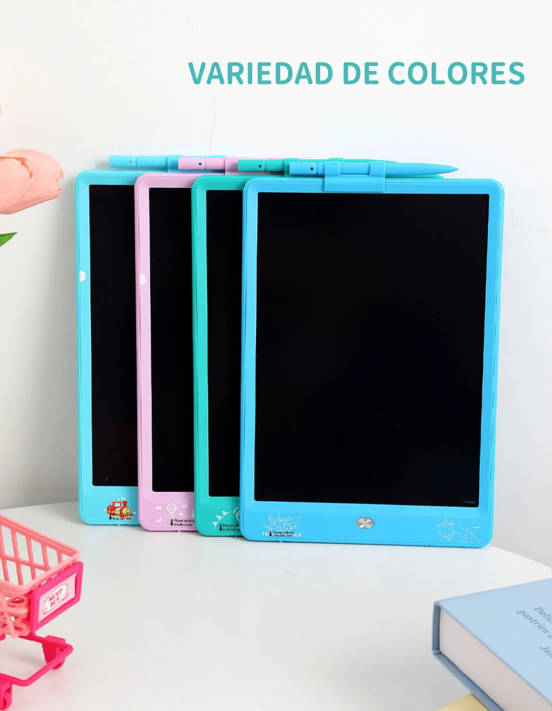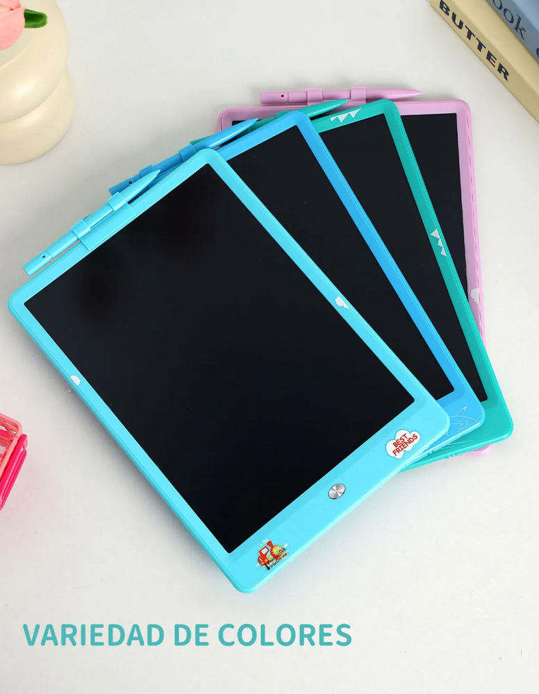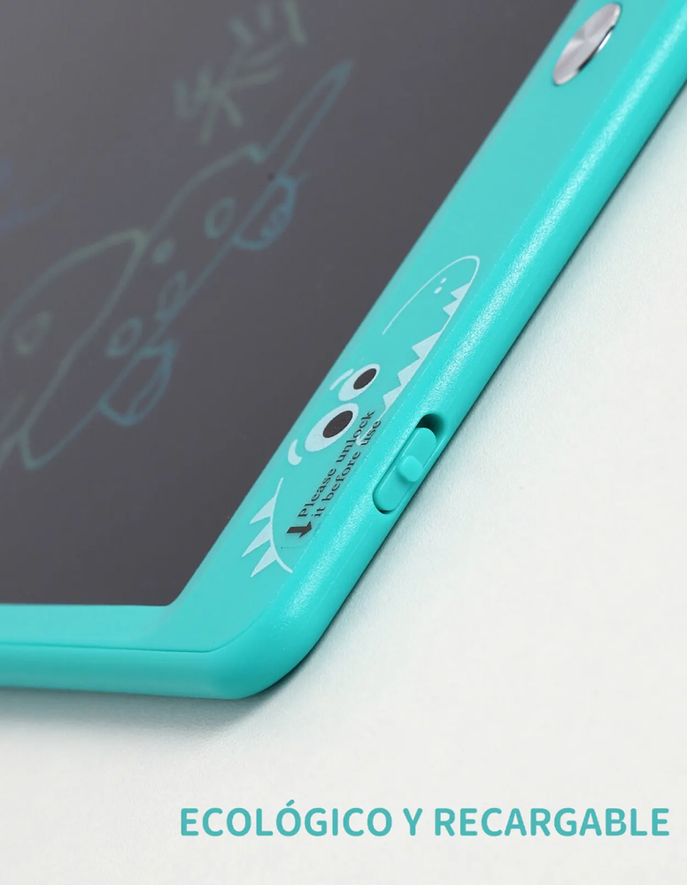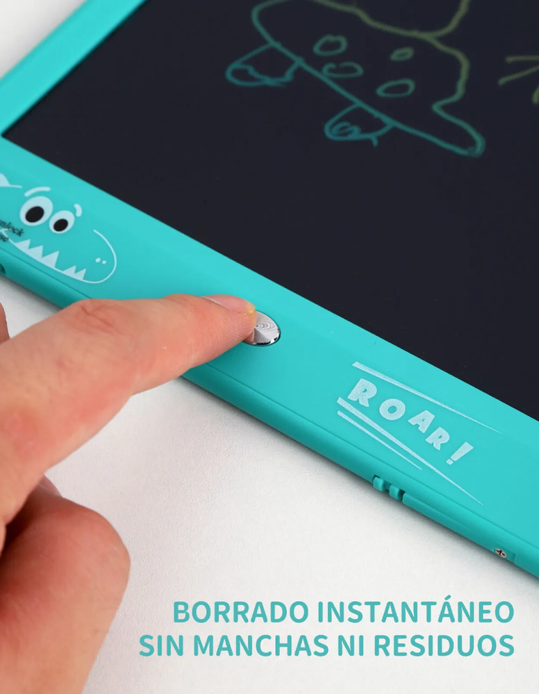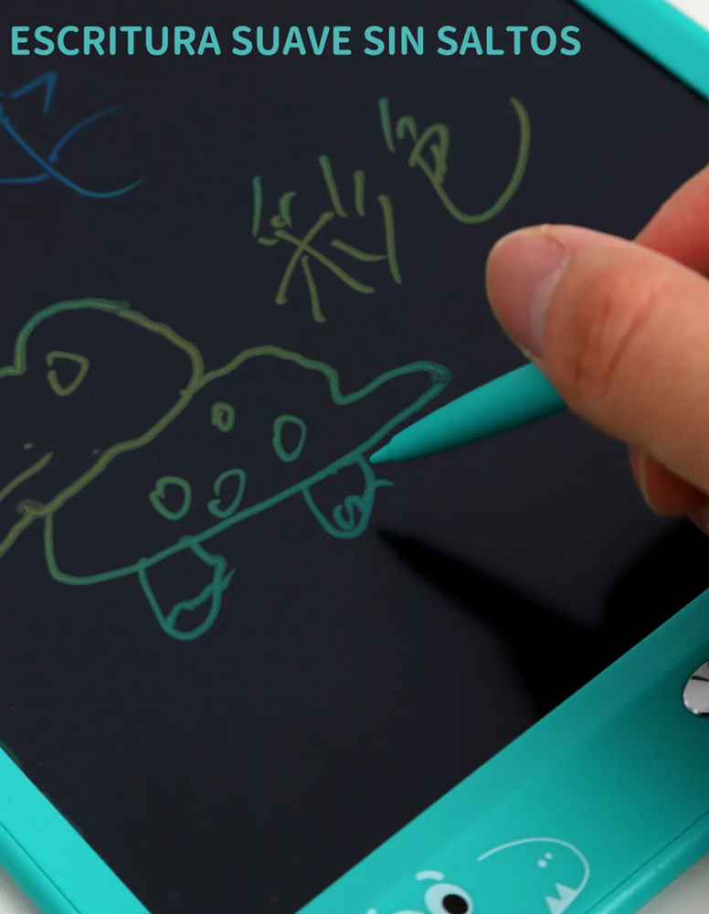 Pizarra electrónica de dibujo. Práctica y liviana, esta pizarra con carcasa plástica es ideal para que niños y niñas dibujen, escriban y se diviertan sin usar papel. La pantalla LCD muestra trazos en colores vivos y se borra fácilmente con solo presionar un botón.