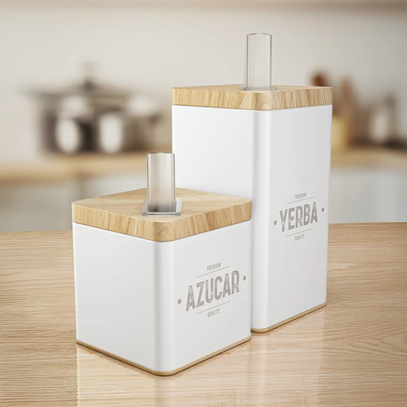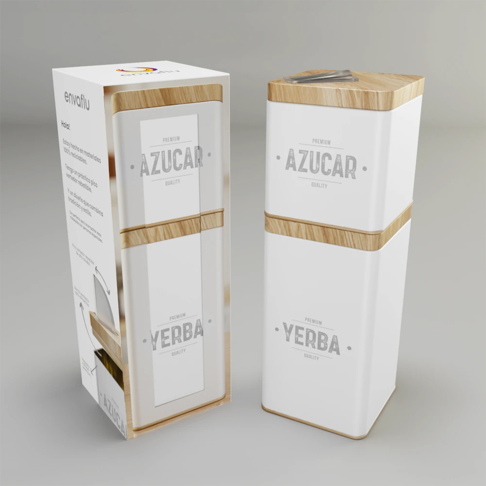 Pico plástico rebatible. Azucarera: Alto: 9.00cm - Lados 10cm Capacidad: 400gr Yerbera: Alto: 17.00cm - Lados: 10cm Capacidad: 600gr