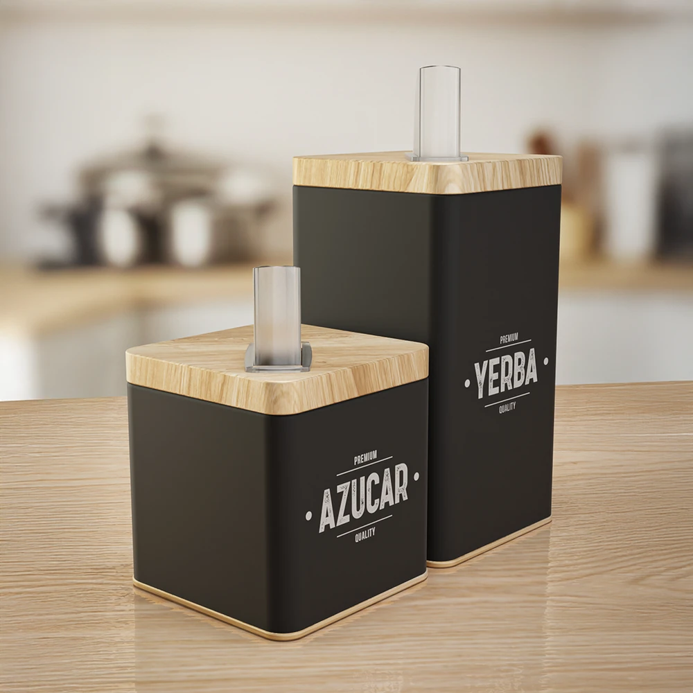 Pico plástico rebatible. Azucarera: Alto: 9.00cm - Lados 10cm Capacidad: 400gr Yerbera: Alto: 17.00cm - Lados: 10cm Capacidad: 600gr